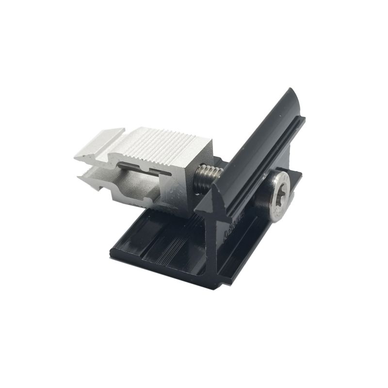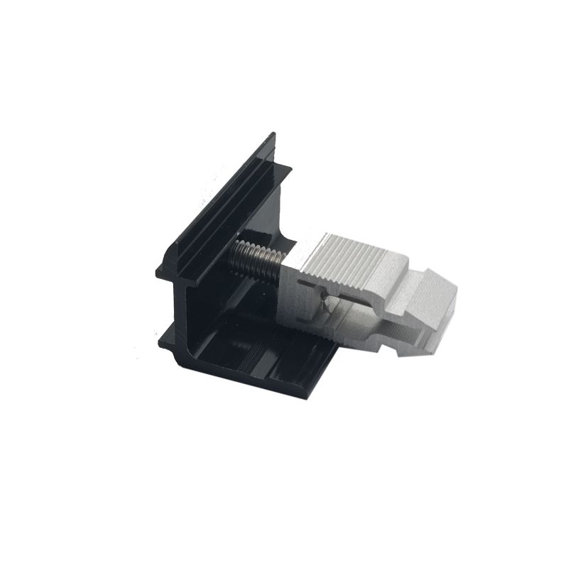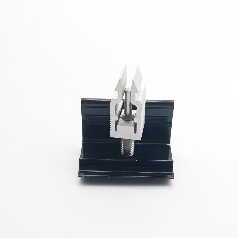 Pengapit pertengahan dan pengapit hujung adalah aksesori yang digunakan untuk menyambungkan rel aluminium dan panel solar, yang biasanya terdiri daripada dua bahagian sudut aloi aluminium. Pengapit pertengahan dan pengapit hujung boleh memberikan sokongan dan kestabilan tambahan untuk memastikan panel solar kekal stabil secara menegak atau mendatar.